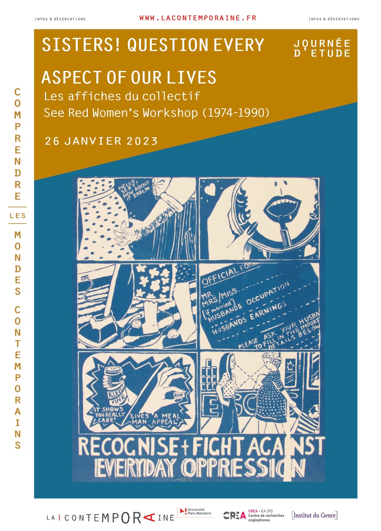 See Red Collective members: Pru, Suzy, Jess and Anne visiting Paris for a one day symposium on 26th January, at La Contemporaine radical print archive and Université Paris Nanterre – ‘Sisters! Question Every expanding on our work as a collective. A very exciting day indeed with much amazing posters, art, conversation, histories, questioning of gender and intergenerational sharing – also great curatorial presentation presentation about forthcoming Tate exhibition ‘Women in Revolt!’ which will feature some of our See Red poster work.